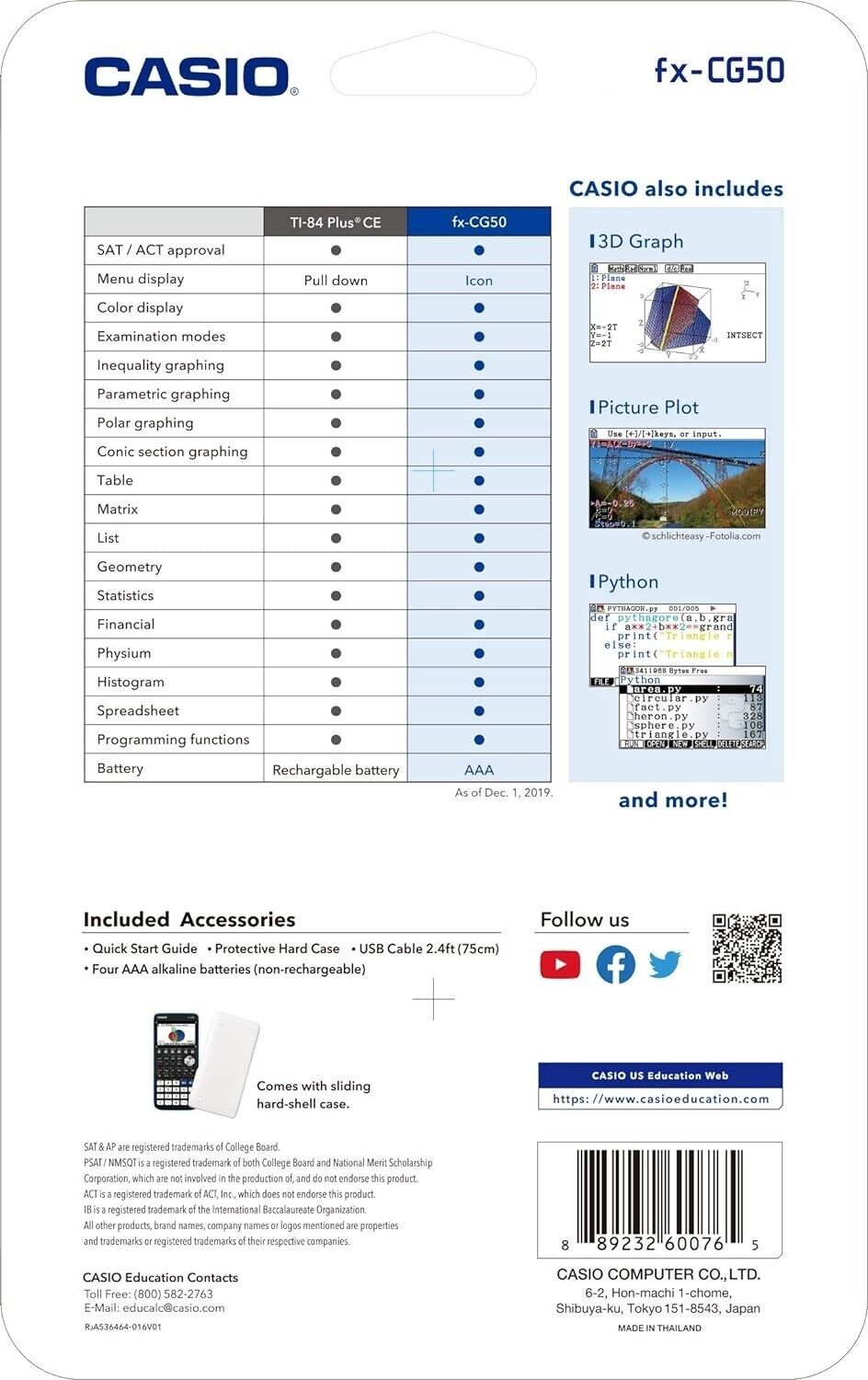 Casio Colour FX-CG50 Graphic Calculator FREE SHIPPING