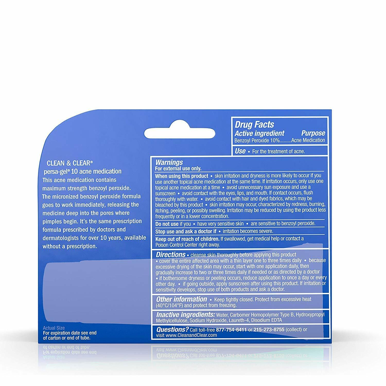 Clean & Clear Persa-Gel 10% Benzoyl Peroxide Maximum Strength Acne Treatment 28g