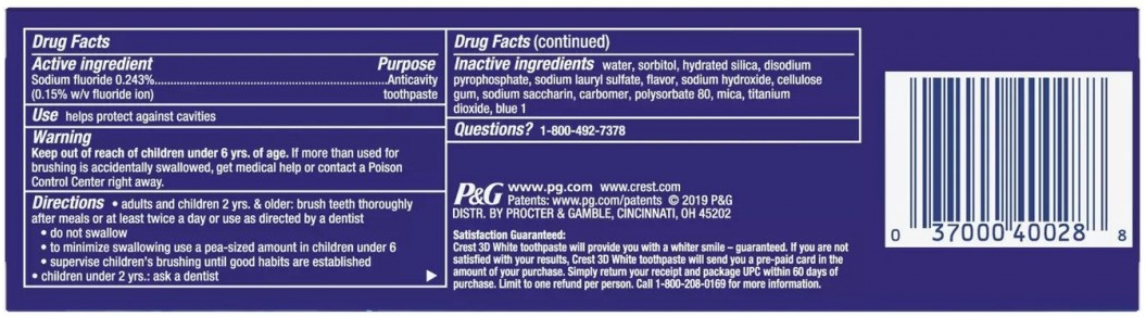 Crest 2 x 116g Pack 3D White Luxe Arctic Fresh Teeth Whitening Toothpaste NEW