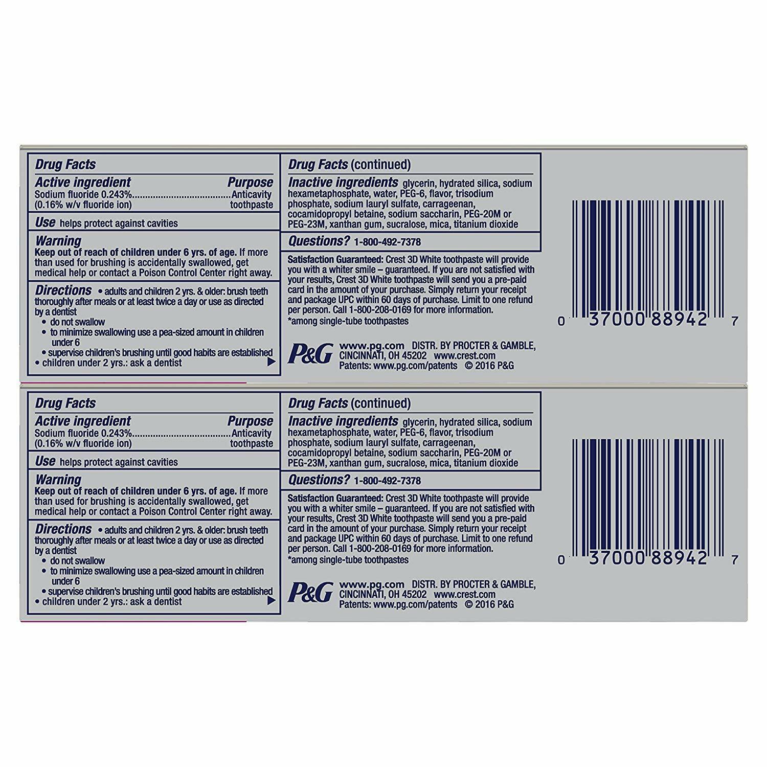 Crest 2 x 116g Pack 3D White Luxe Brilliance Vibrant Teeth Whitening Toothpaste