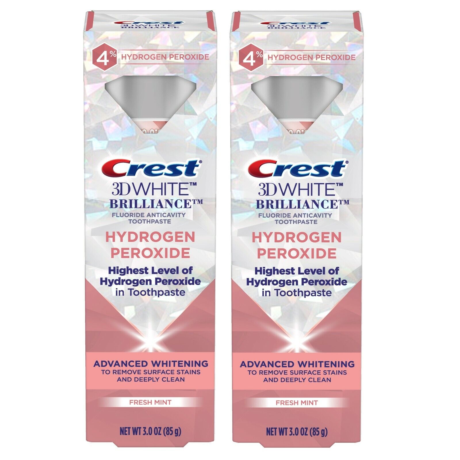 Crest 2x85g 3D White Brilliance 4% Hydrogen Peroxide Teeth Whitening Toothpaste