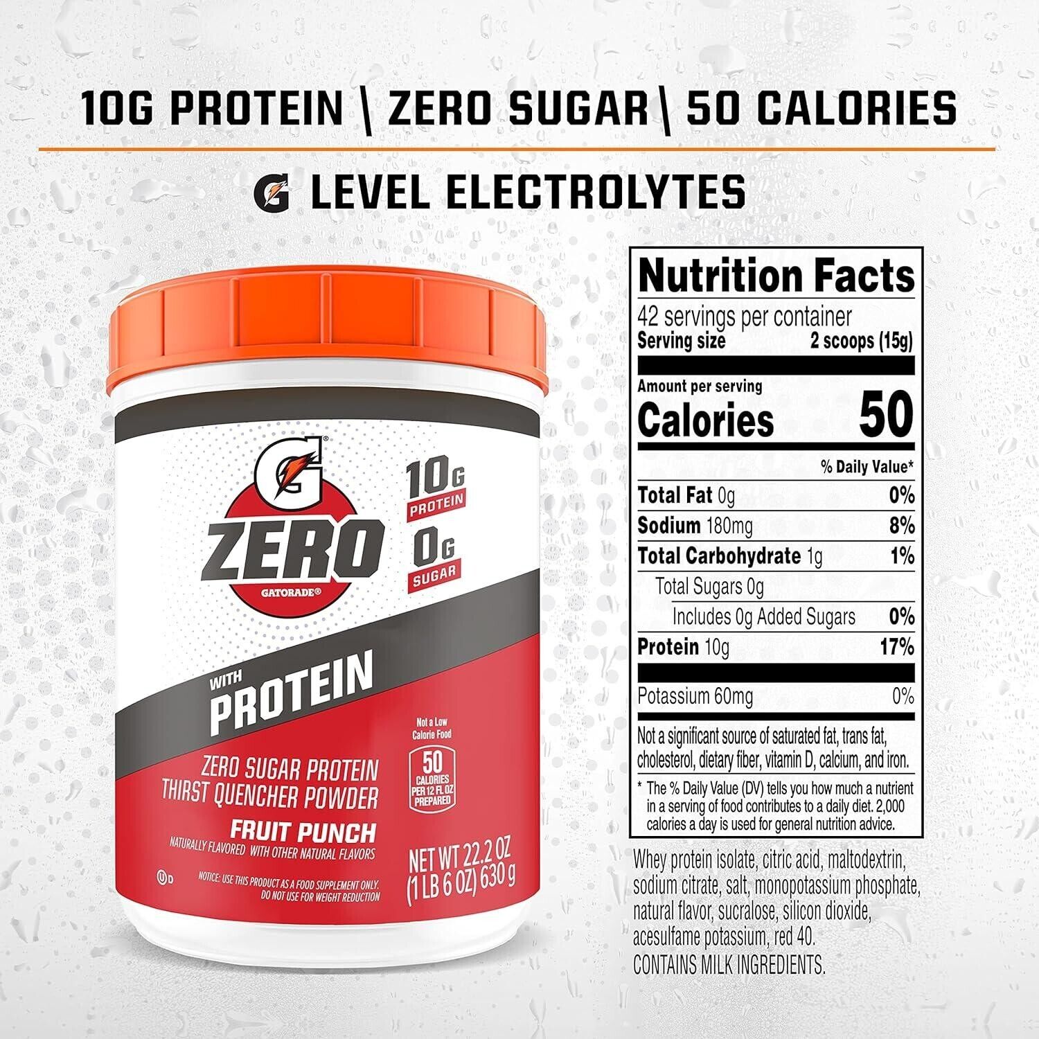 Gatorade ZERO with Protein Sports Drink Powder - FRUIT PUNCH 630g (42 Servings)
