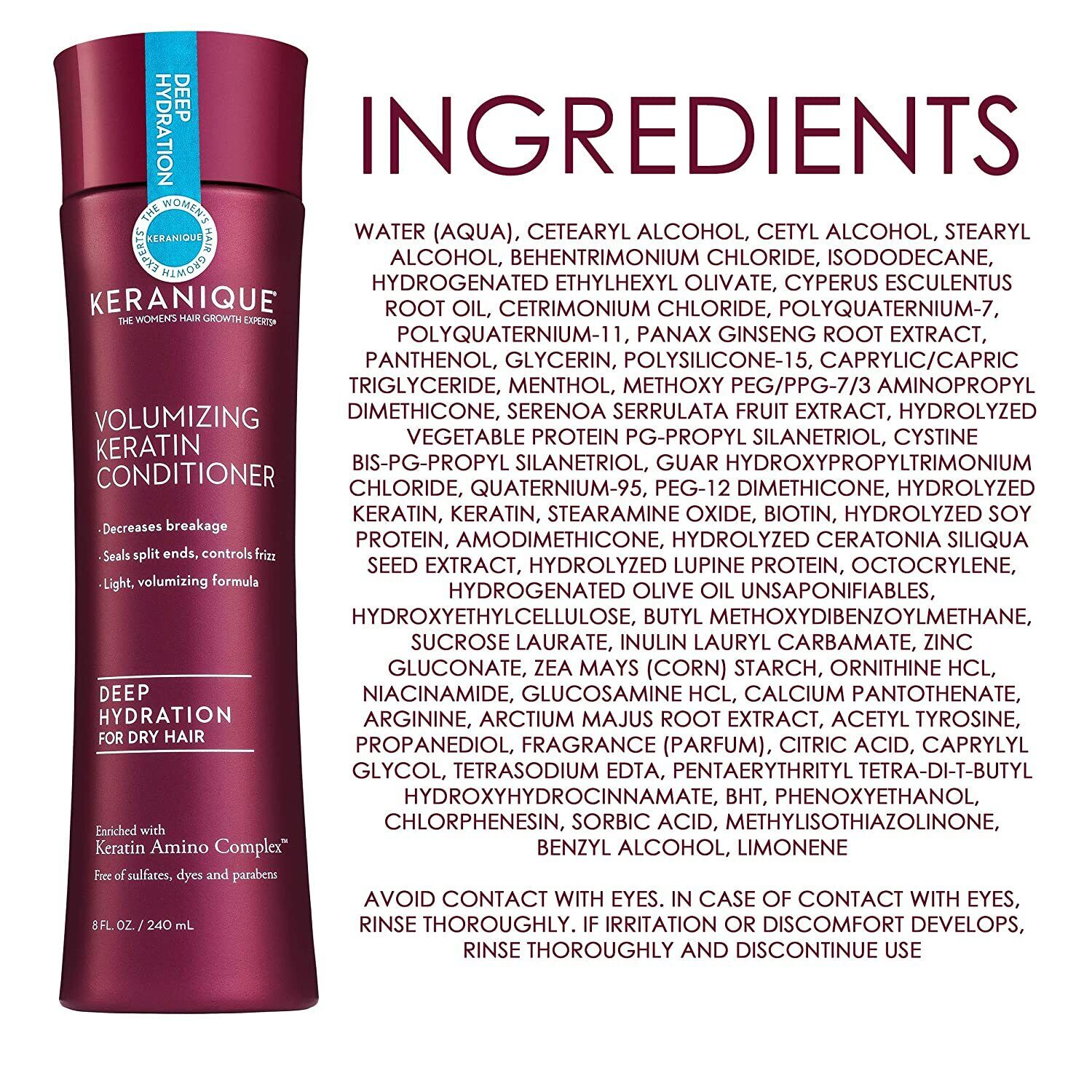 KERANIQUE Keratin Conditioner Hair Regrowth DEEP HYDRATION 240mL - FREE EXPRESS