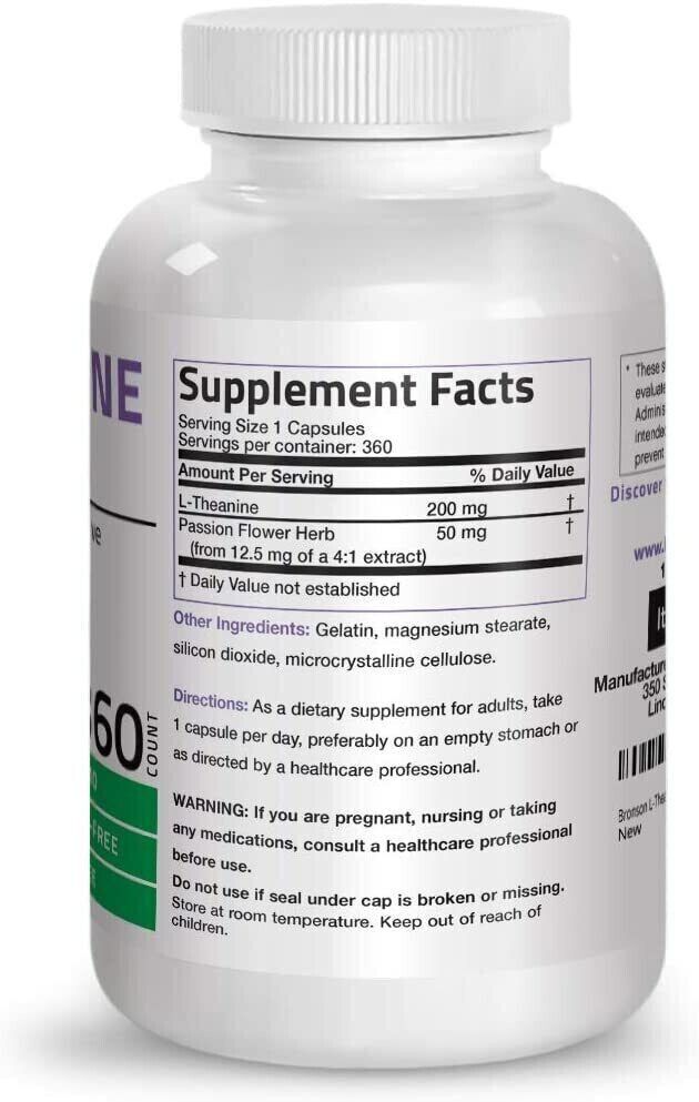 L-Theanine 200mg 360 Caps Bronson DOUBLE STRENGTH - PREMIUM QUALITY - MEGA VALUE