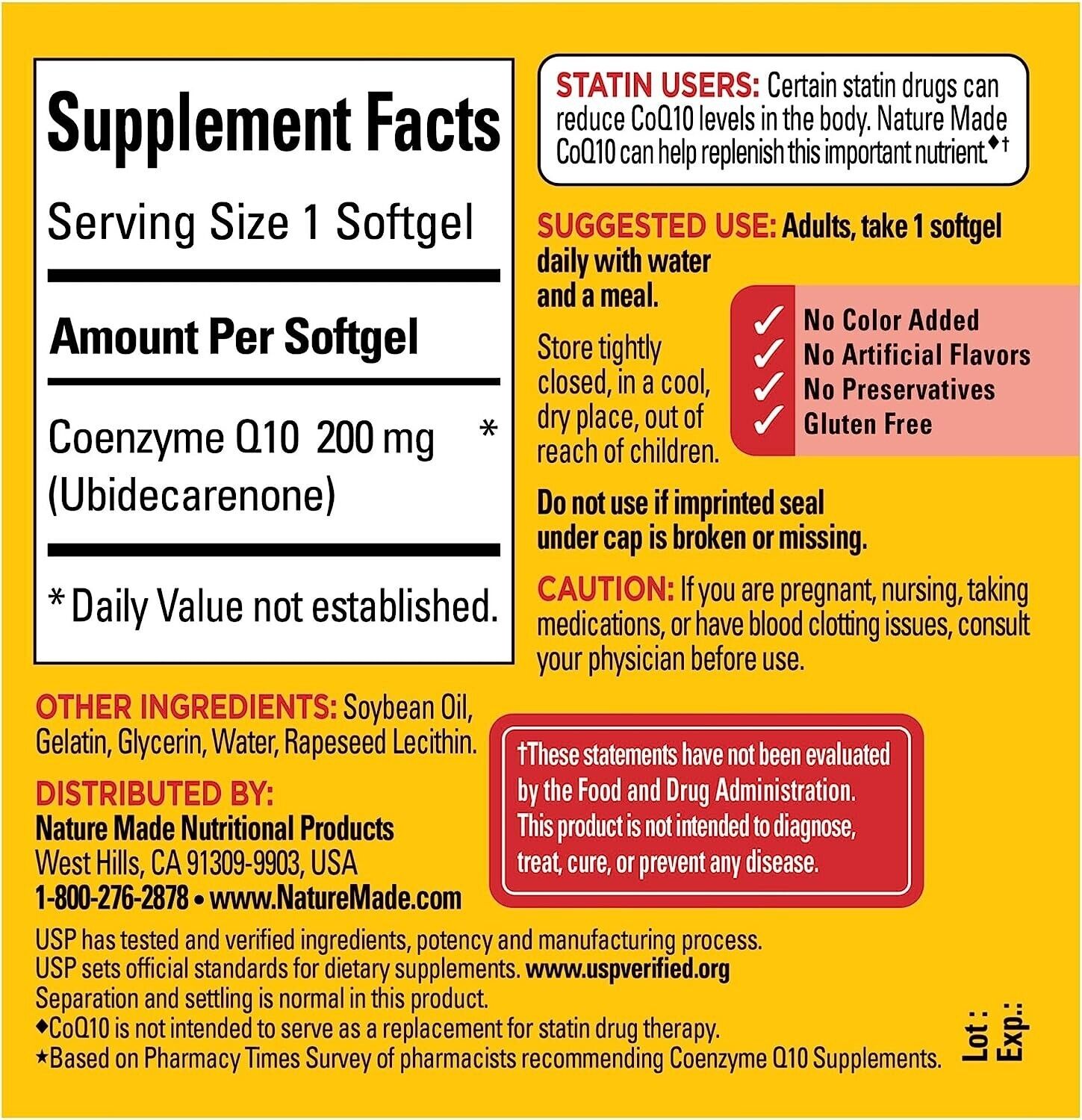NATURE MADE CoQ10 200mg Support Heart Health & Energy Production - 40 Soft Gels