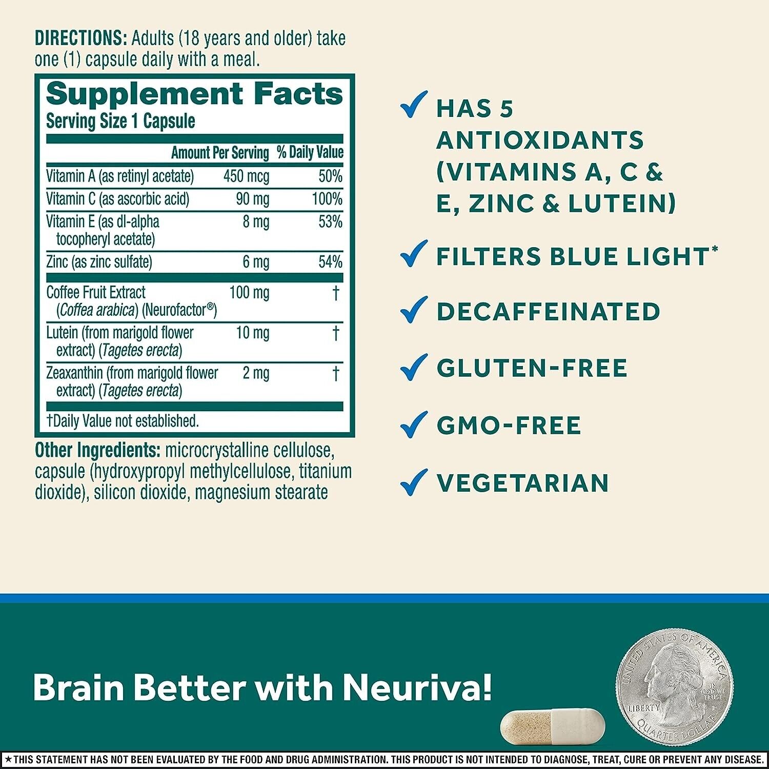 NEURIVA Brain Performance for Brain & Eye Health Memory Eyesight Support 30 Caps