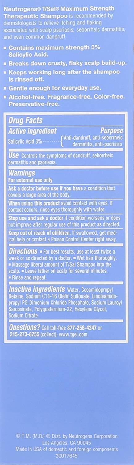 Neutrogena T/Sal Tsal Therapeutic Shampoo 3% Salicylic Acid 4.5oz 133mL NEW