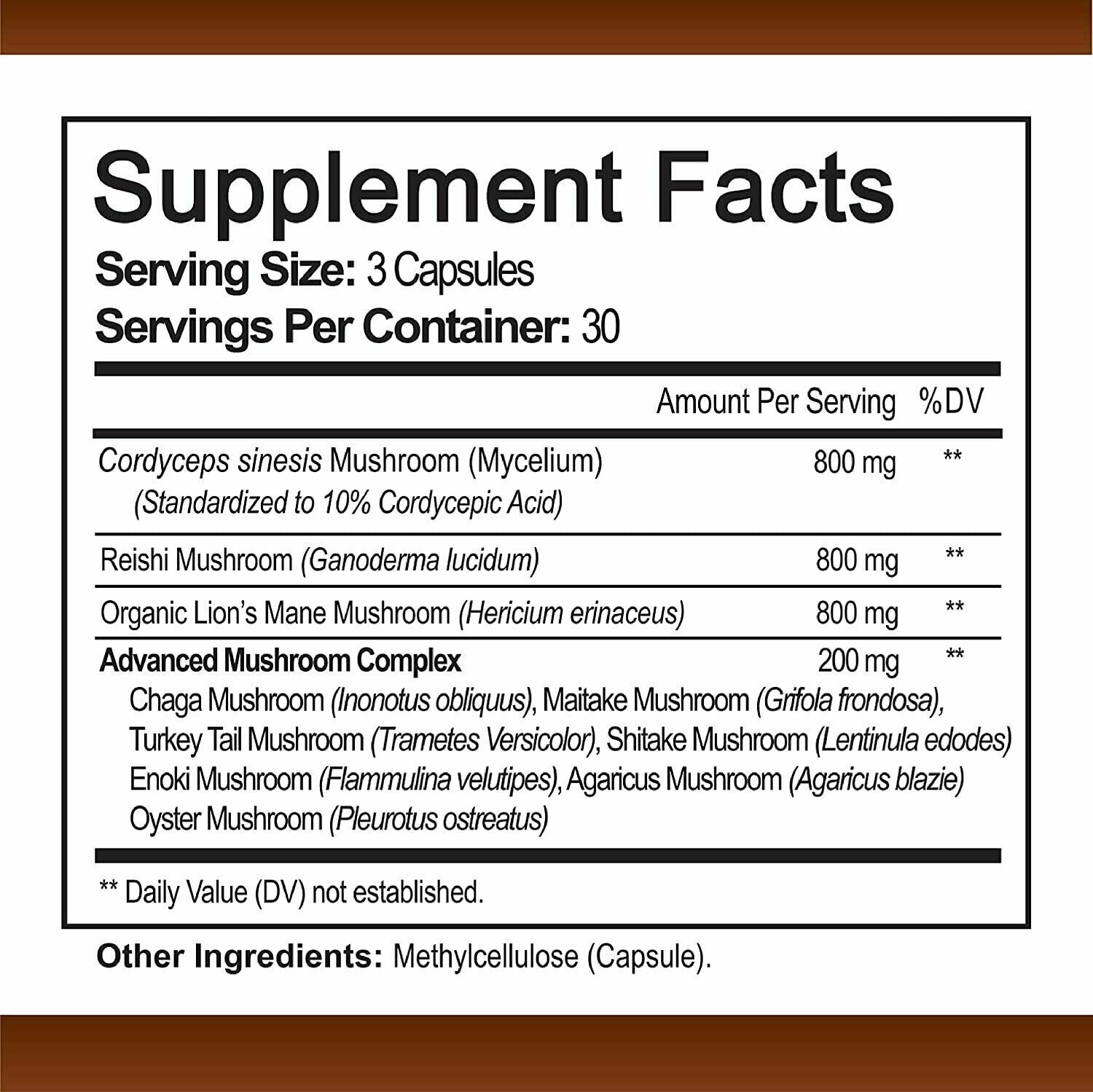 NUTRIFLAIR MUSHROOM COMPLEX 2600mg 90 Caps Immune Memory Support - FREE EXPRESS