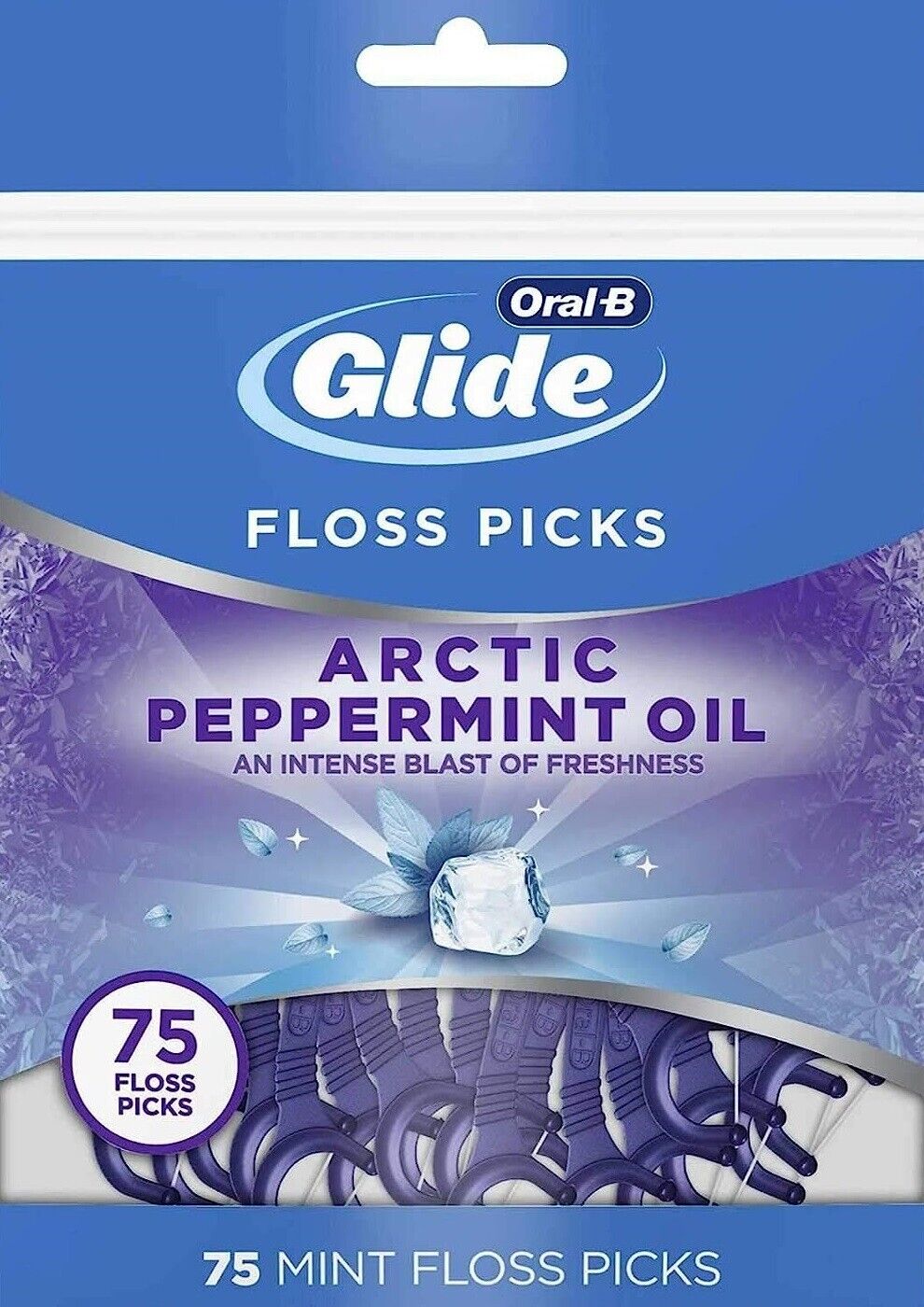 Oral-B GLIDE Dental Floss Picks Toothpicks - Arctic Peppermint Oil - 75 Pack NEW