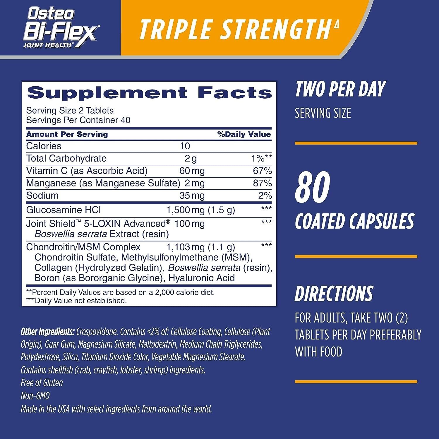 Osteo Bi-Flex Joint Health TRIPLE STRENGTH Vitamin C + Glucosamine HCI - 80 Tabs