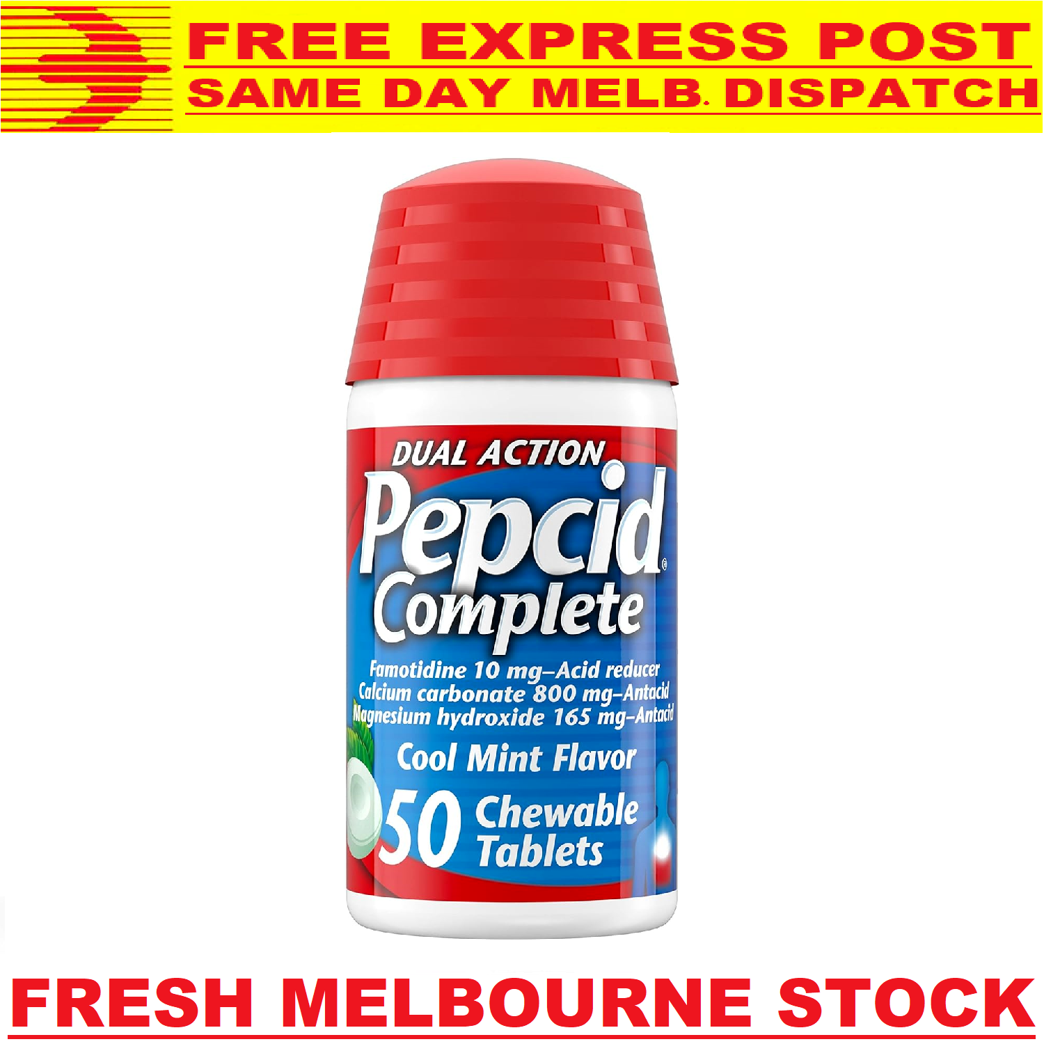 PEPCID Complete Famotidine 10mg Acid Reducer + Antacid 50 Chewable Tablets Mint