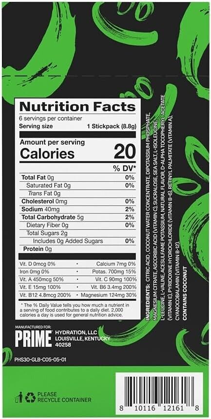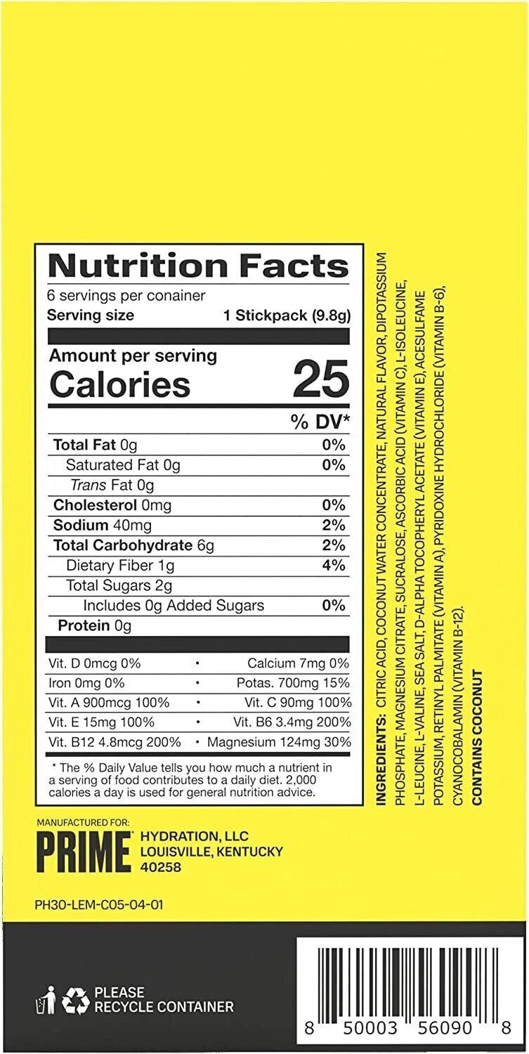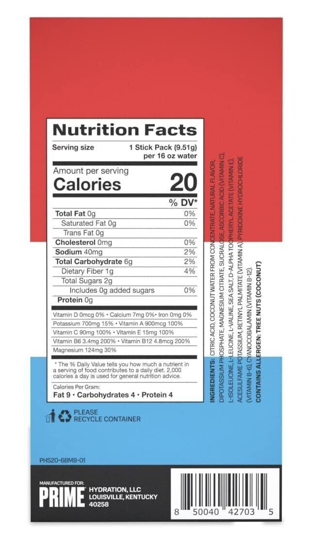 Prime Hydration Powder Sticks -No Added Sugar - 8 Flavours - 6 X 500ml Servings