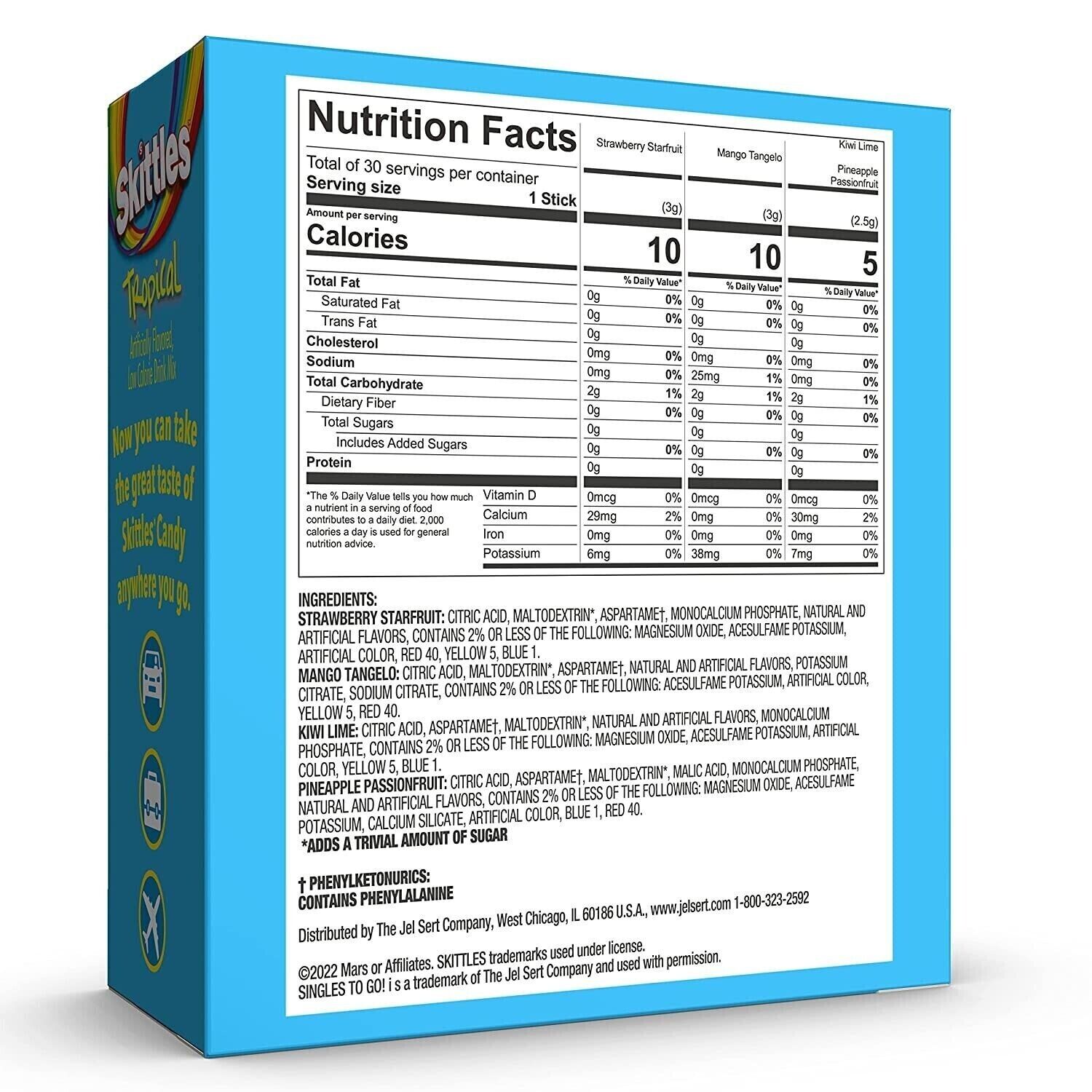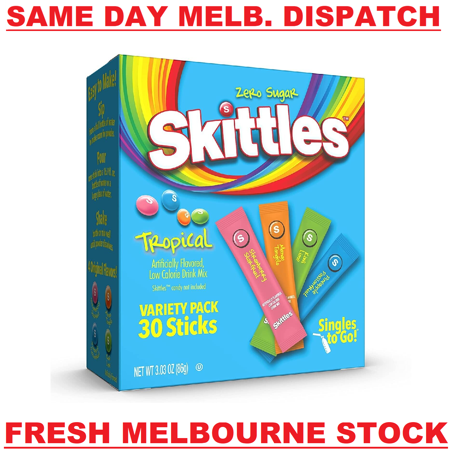 Skittles SUGAR FREE Drink Mix (4 Mix TROPICAL Flavours) - 30 Servings