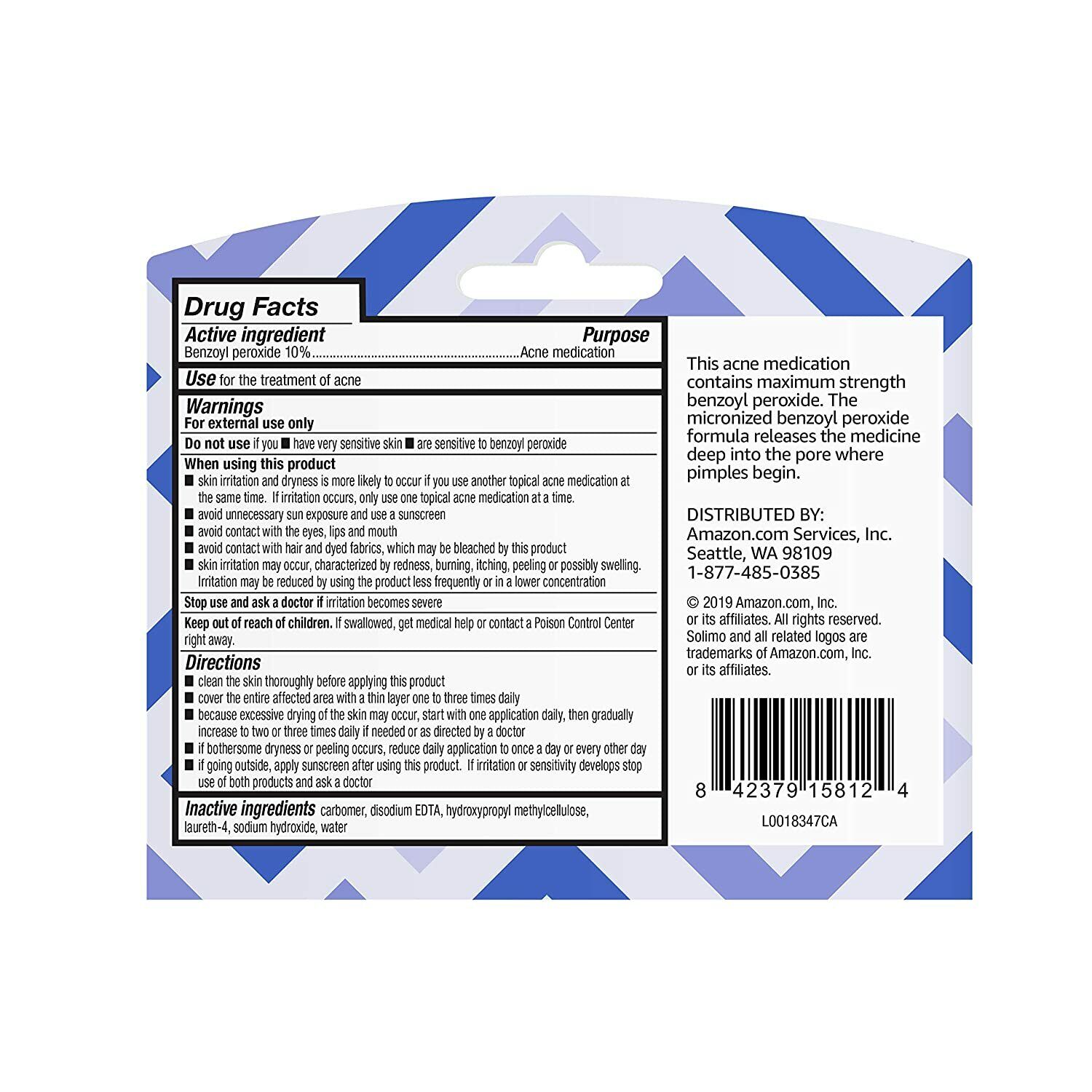 Solimo 10% Benzoyl Peroxide Acne Cream Medication MAXIMUM STRENGTH Skin Care 28g
