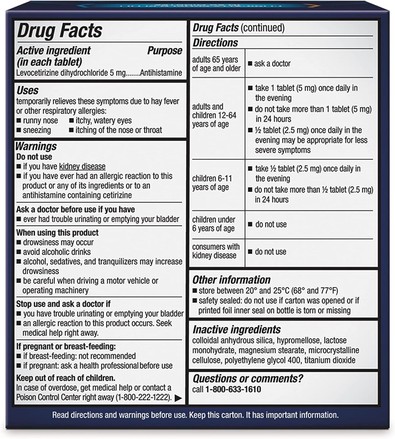 XYZAL ALLERGY 24HR RAPID HAYFEVER RELIEF CETIRIZINE 5MG - 80 TABLETS EXP. 10/25